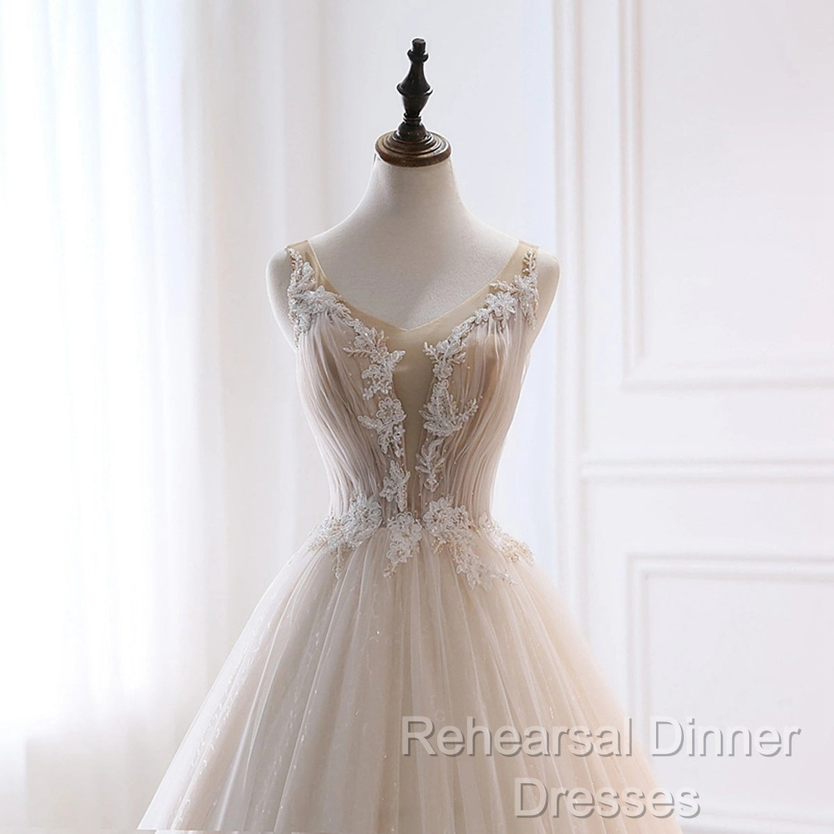Ivory Tulle With Lace Long Wedding Party Dress With Sweep Train, Ivory Formal Dress
