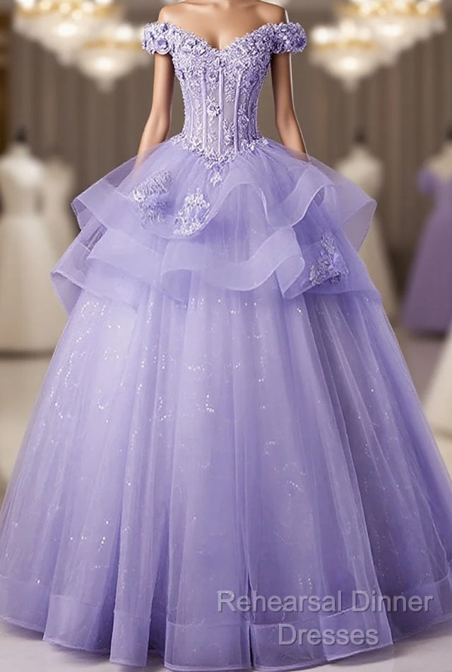 Light Purple Tulle With Lace Off Shoulder Sweet 16 Dress, Light Purple Formal Dress