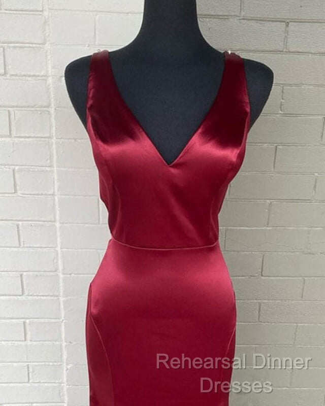 Long Mermaid V Neck Satin Bridesmaid Dresses