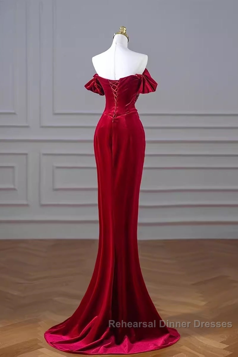 Mermaid Strapless Burgundy Velvet Semi Formal Prom Dresses Evening Dress