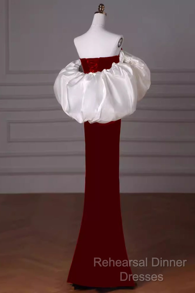 Mermaid Strapless Red Semi Formal Prom Dress Long Party Dresses
