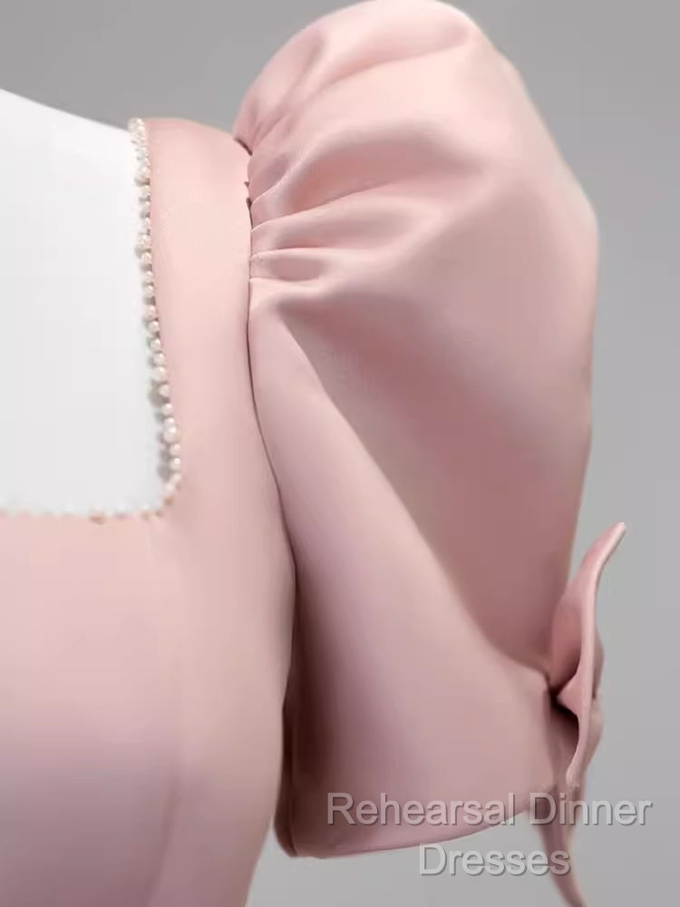 Modest A Line Short Sleeves Long Pink Semi Formal Prom Dress