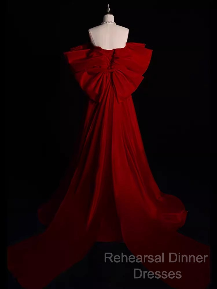 Modest A Line Strapless Long Short Sleeves Satin Red Semi Formal Prom Dresses