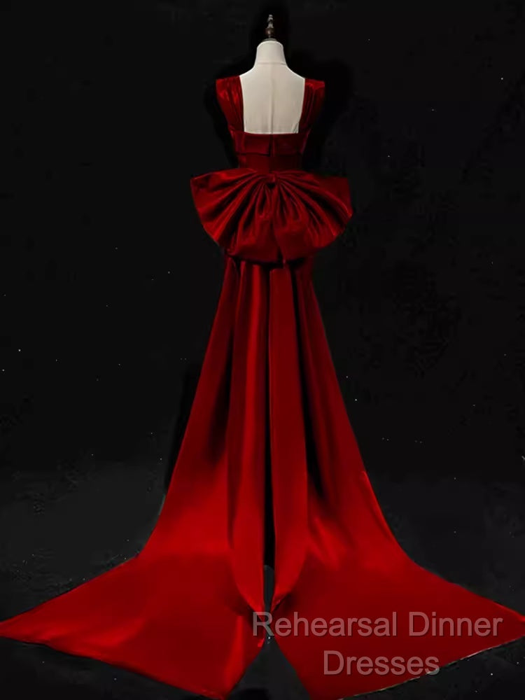 Modest Mermaid Straps Long Sleeveless Red Semi Formal Prom Dresses