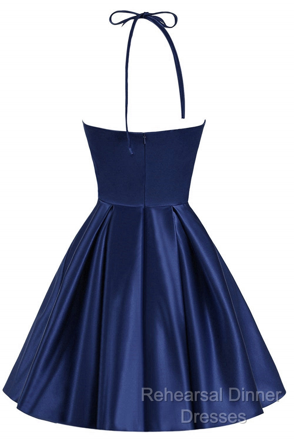 Navy Blue Cute Halter Satin Short Homecoming Dress, Blue Semi Formal Prom Dress Party Dress