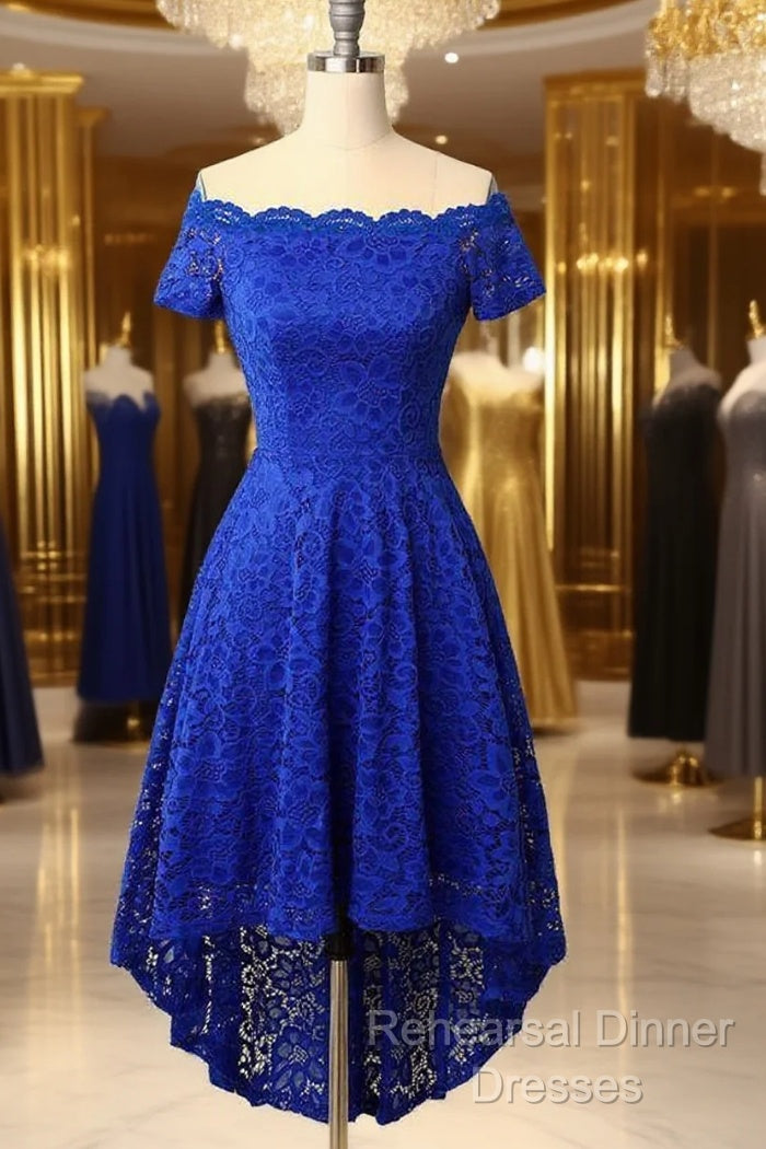 Off Shoulder Asymmetrical Dress Royal Blue Homecoming Dress