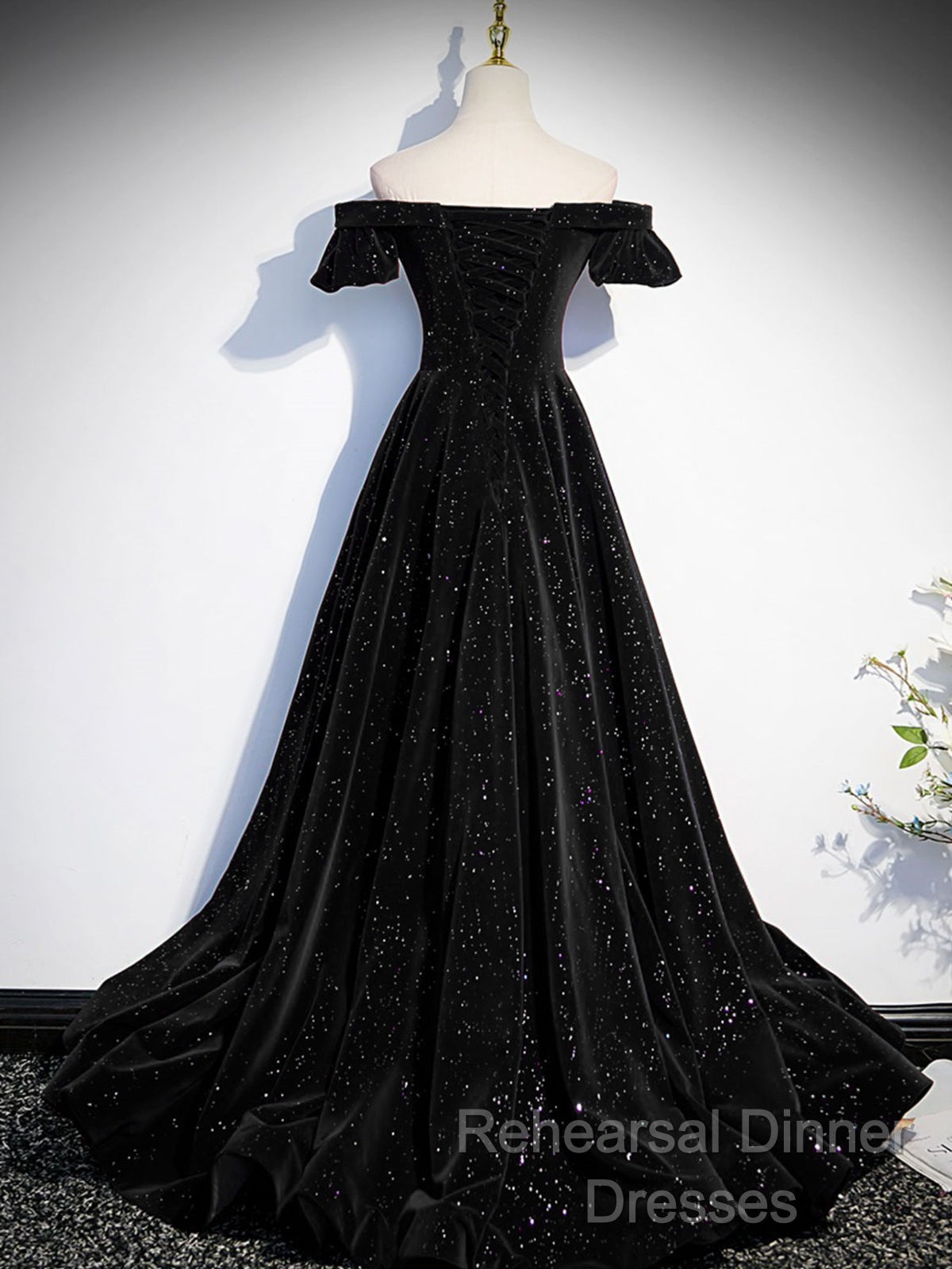 Off The Shoulder Green Black Long Semi Formal Prom Dresses, Off Shoulder Green Black Formal Evening Dresses