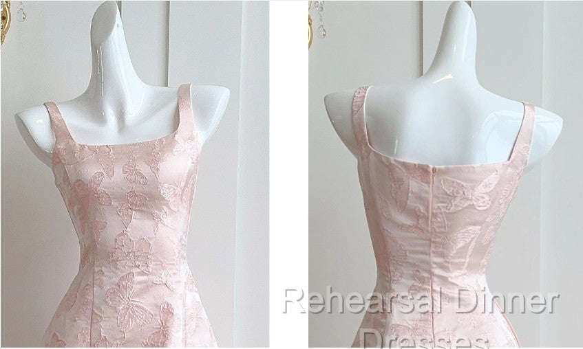 Pink A-Line Vintage Butterfly Embroidered Satin Semi Formal Prom Dress Birthday Dressed01772
