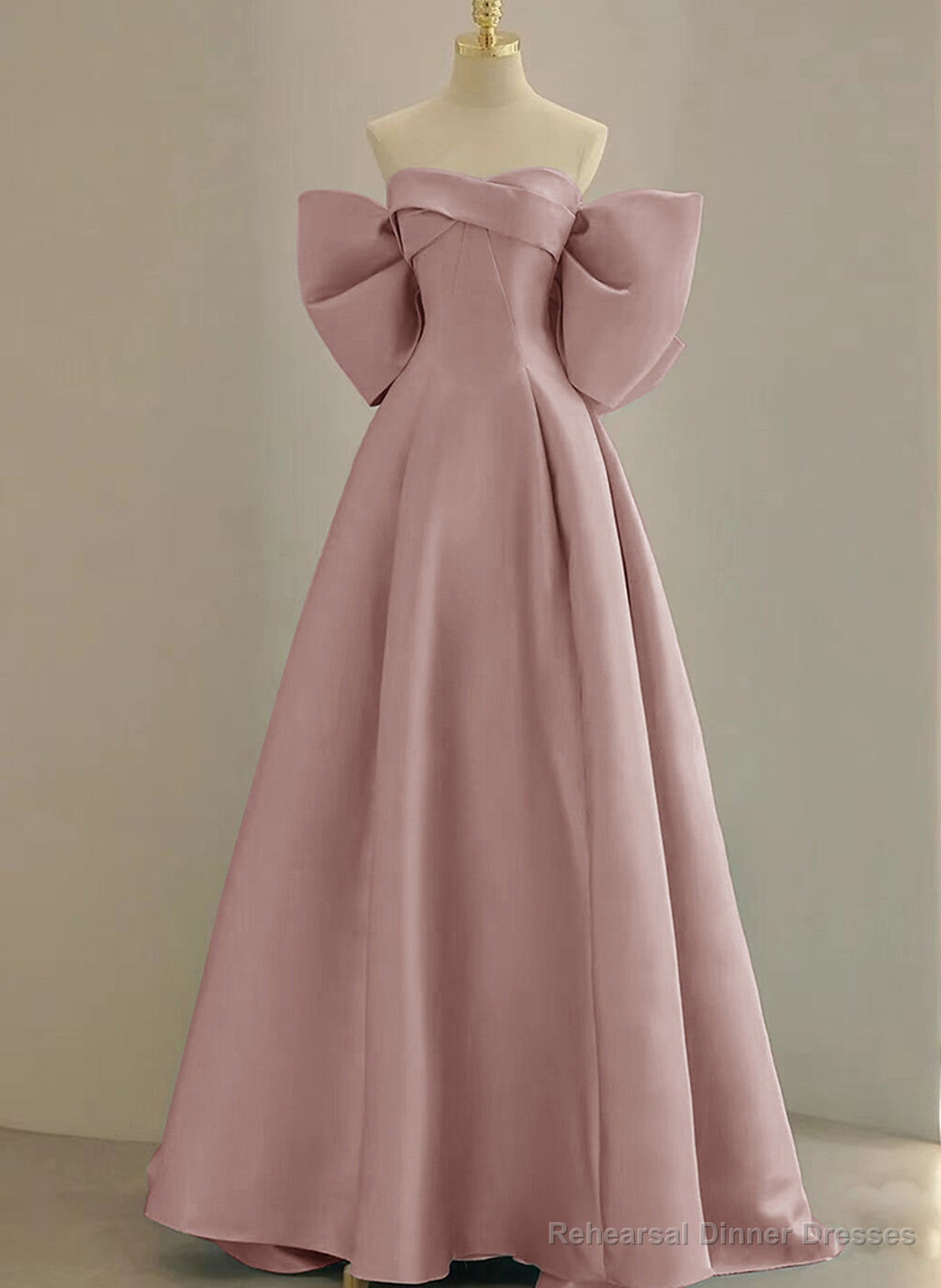 Pink Off Shoulder Satin Long Simple Party Dress, Pink Satin Evening Dress