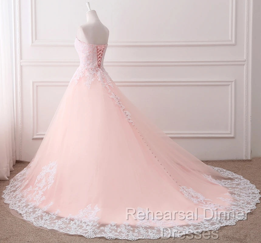 Pink Puffy Ball Gown Princess Sweetheart Tulle Formal Dress With White Lace Semi Formal Prom Dress