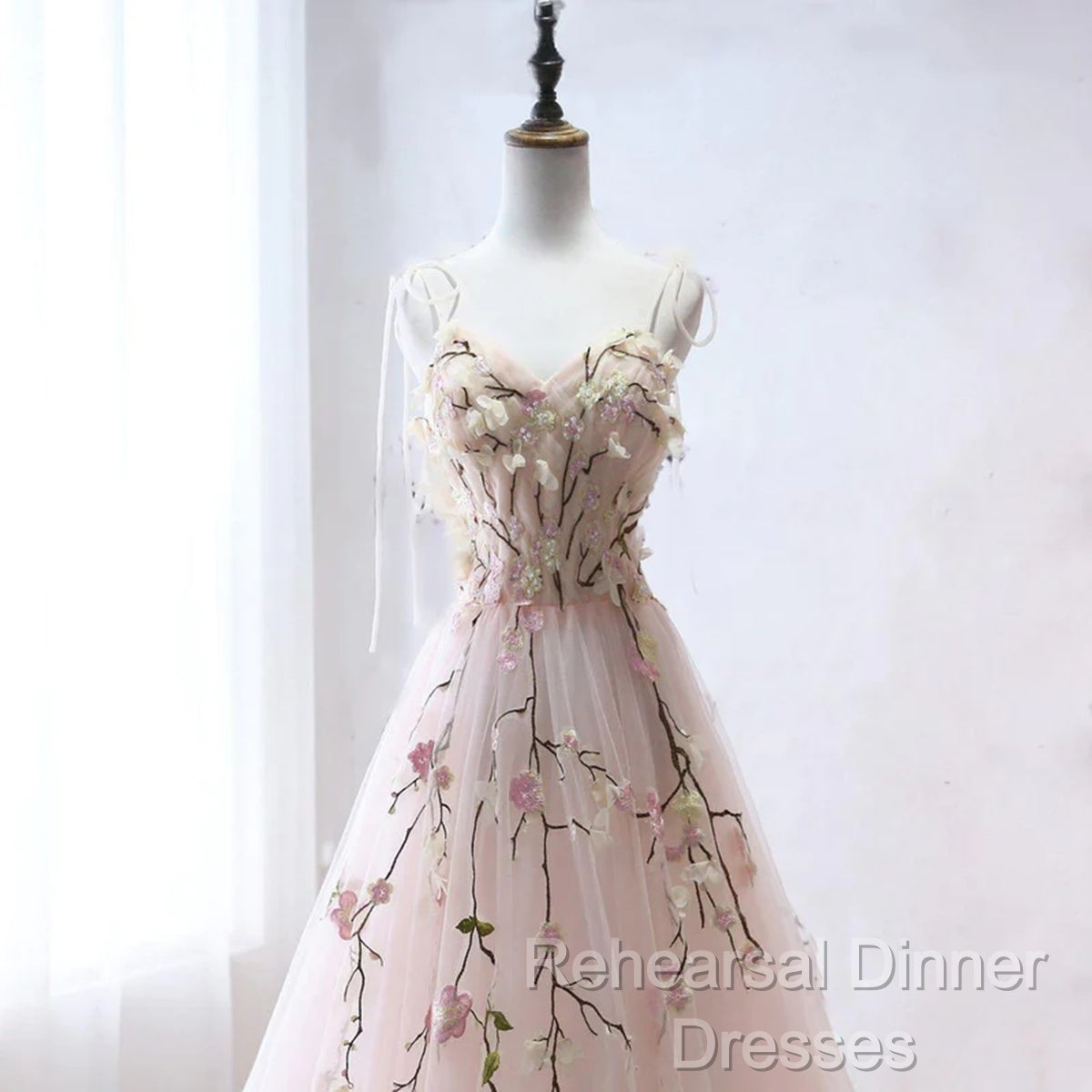 Pink Sweetheart Tulle With Lace Flowers Long Evening Dress, Pink Tulle Semi Formal Prom Dress