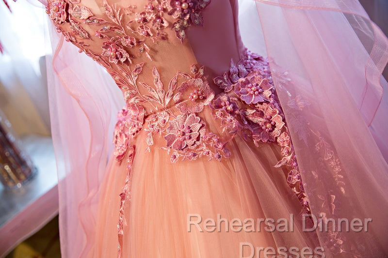 Pink Tulle Sweet 16 Party Dress With Lace Applique, Long Formal Gown