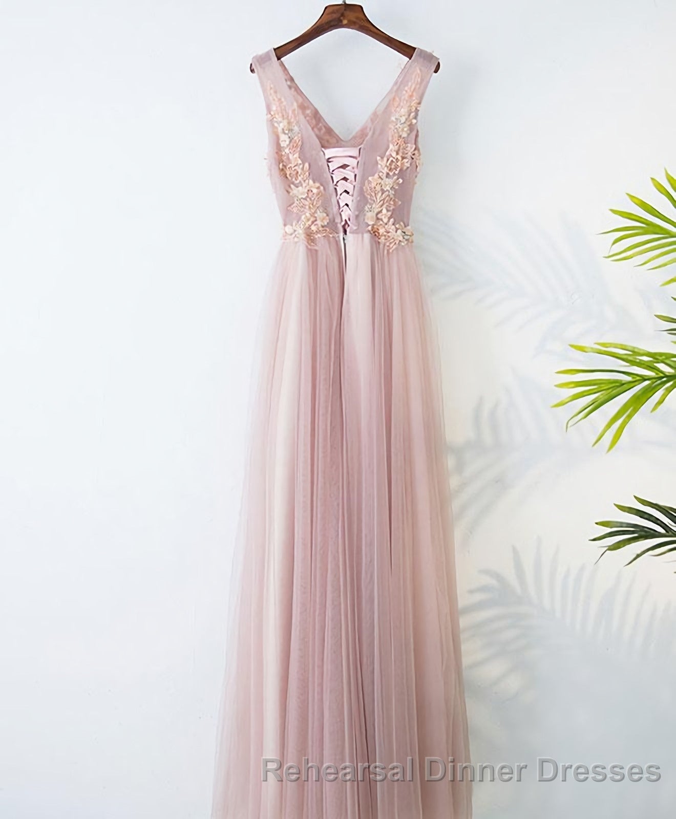 Pink V Neck Lace Long Semi Formal Prom Dress, Cheap Evening Dress
