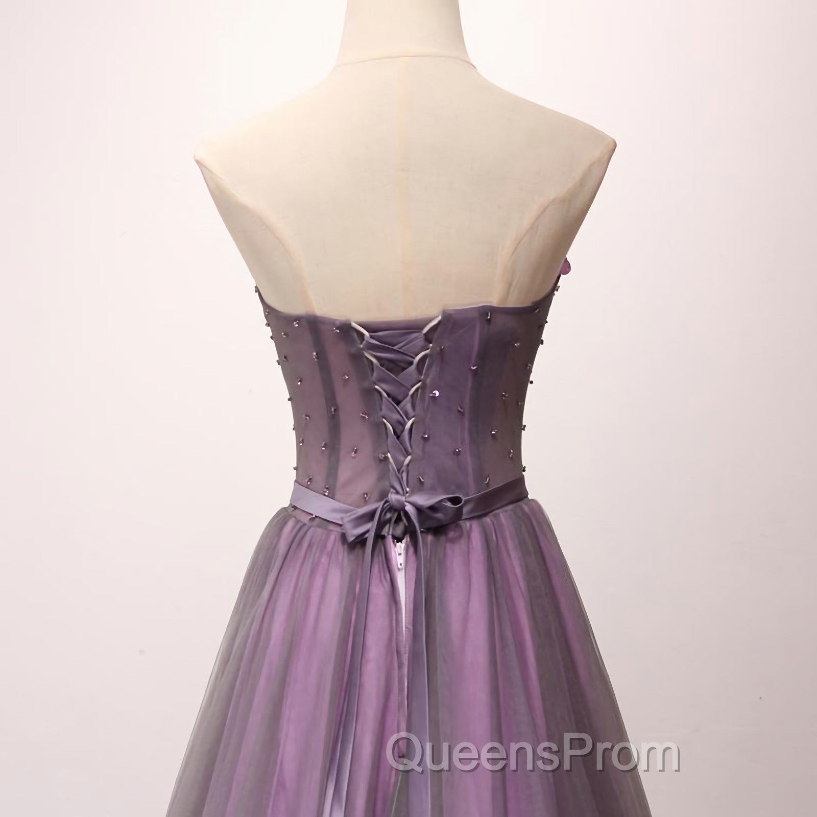 Pruple Tulle Sweetheart Neck Long Evening Prom Dress, Evening Dress
