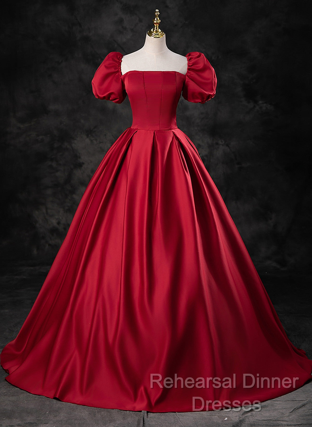 Red Satin Off Shoulder Long Simple A-Line Wedding Party Dress, Red Long Evening Dress