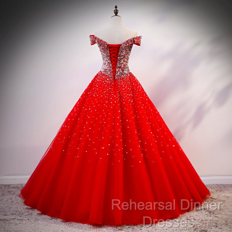 Red Sparkle Tulle Sweetheart Party Dress, Shiny Sweet 16 Dresses