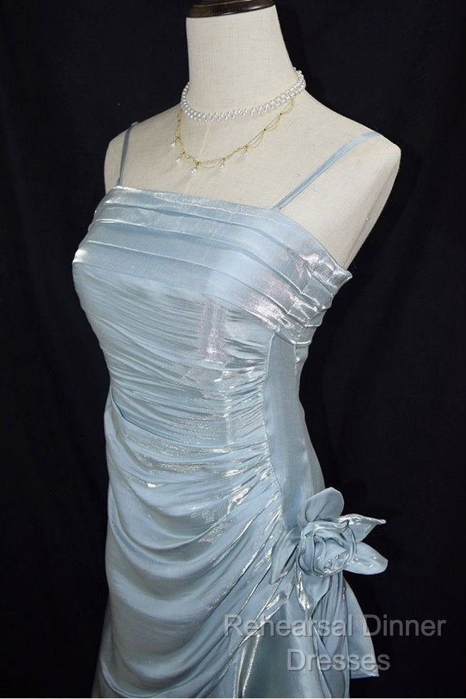 Retro Baby Blue Vintage Floral Dress Asymmetrical Hem Semi Formal Prom Gown