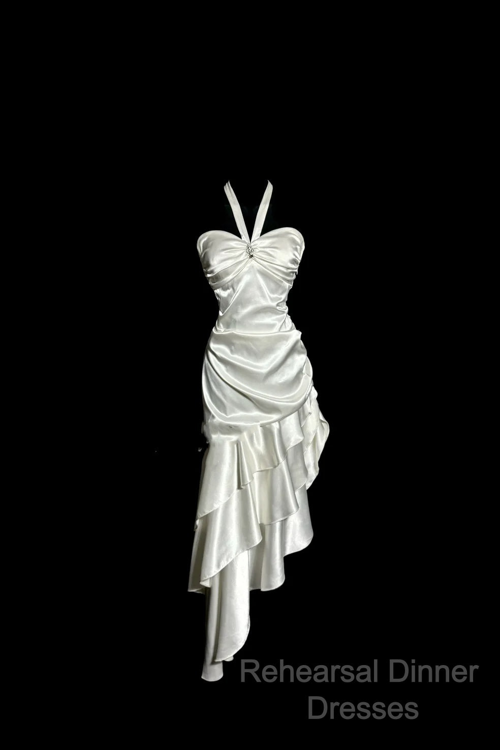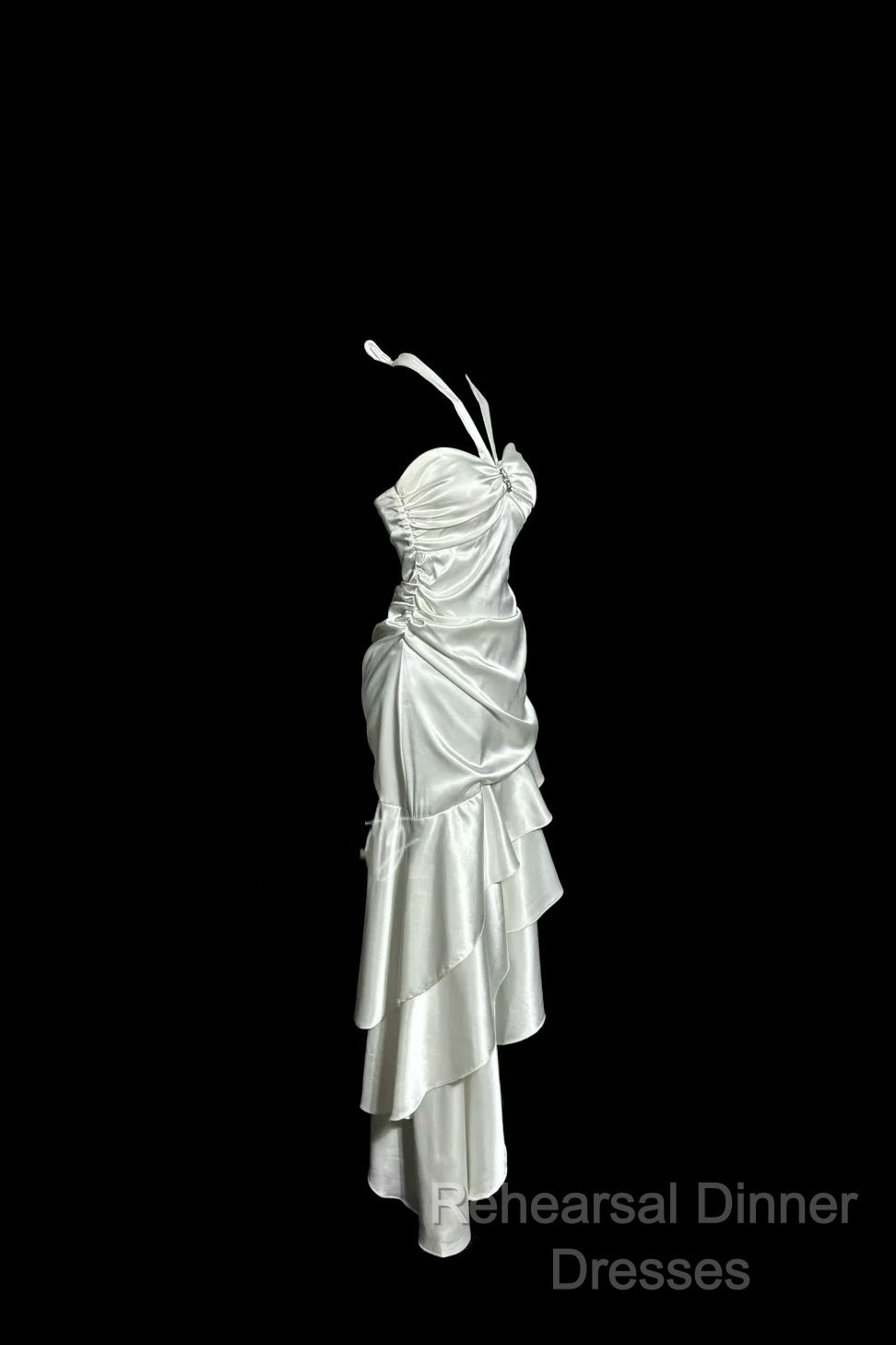 Retro Mermaid Halter Satin High Low Evening Dress Semi Formal Prom Dresses