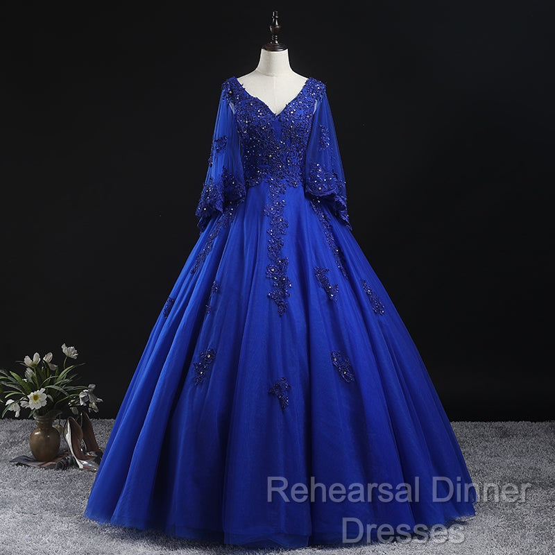 Royal Blue Ball Gown Lace Applique Quinceanera Dresses, Tulle Floor Length Sweet 16 Dresses