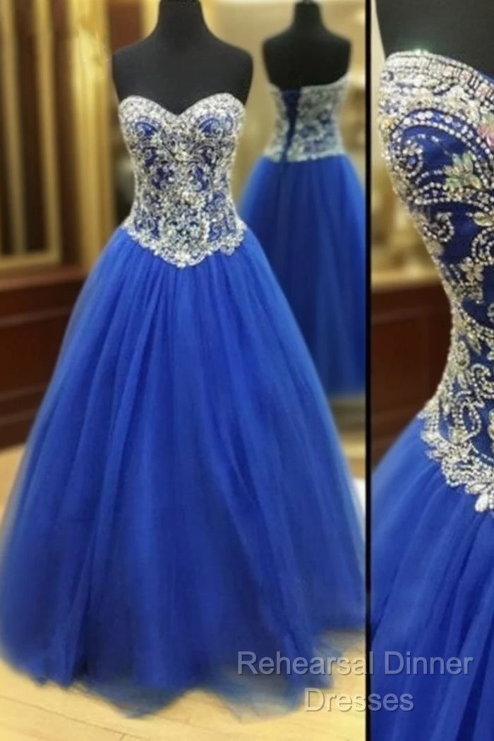 Royal Blue Tulle Beaded Long Semi Formal Prom Dress, Blue Evening Dresses