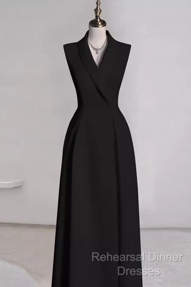 Sexy A Line Black Satin Party Dresses Long Semi Formal Prom Dresses
