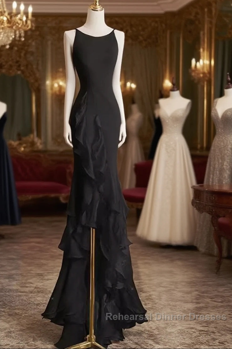 Sexy A Line Long Senior Chiffon Black Semi Formal Prom Dress Formal Dress