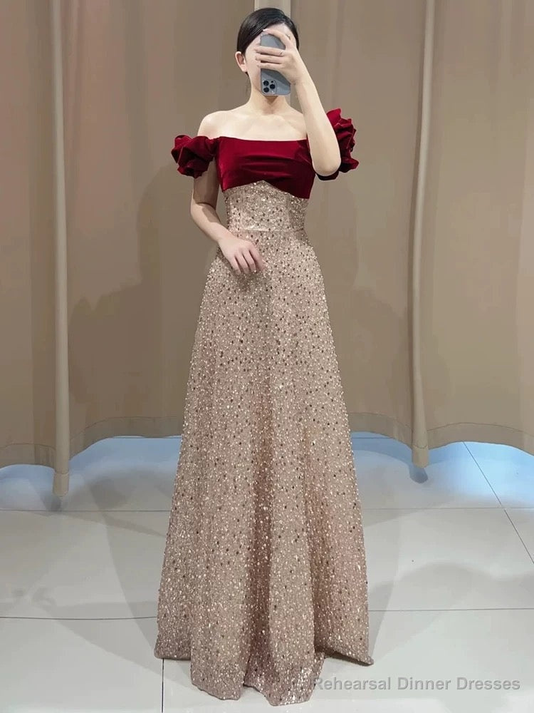 Sexy A Line Off The Shoulder Sequin Floor Length Evening Dress Prom Dresses