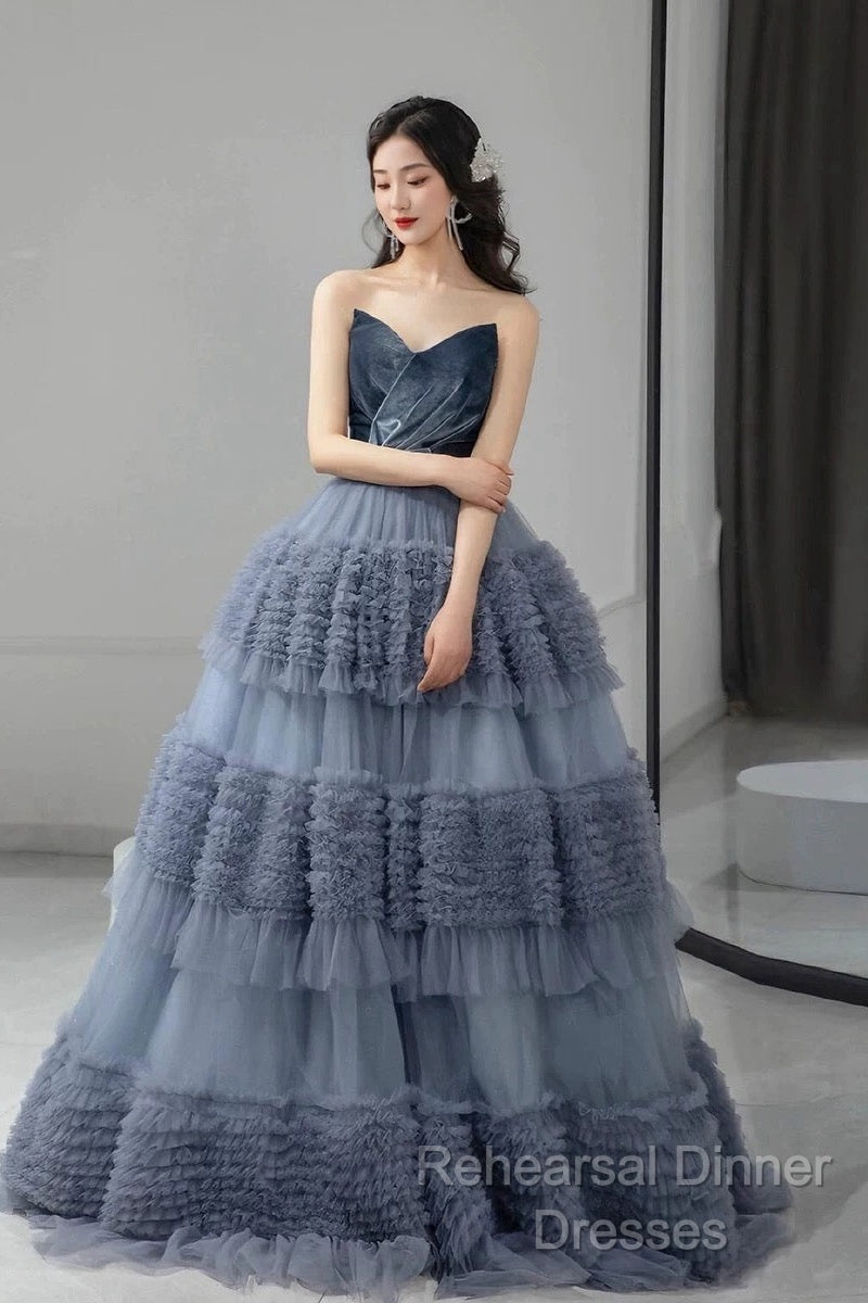 Sexy Ball Gown Sweetheart Neckline Gray Tulle Evening Dress Semi Formal Prom Dresses