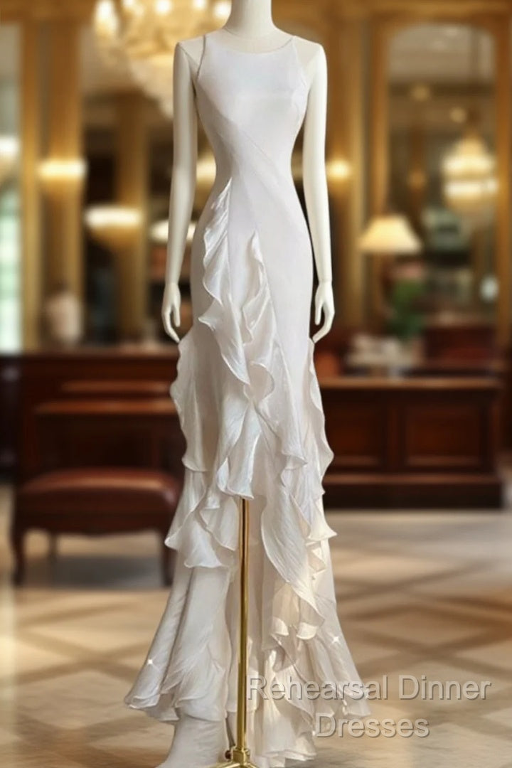 Sexy Mermaid Scoop Satin Night Party Dress White Long Semi Formal Prom Dresses