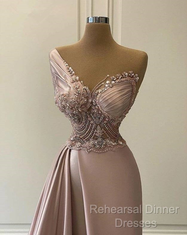 Sexy Robe De Soiree A-Line One-Shoulder Floor Length Beaded Slit Long Semi Formal Prom Dresses Semi Formal Prom Gown Evening Dresses