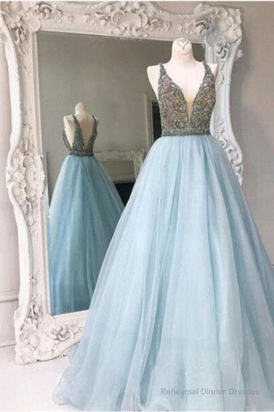 Shiny Ball Gown Light Blue Prom Dress