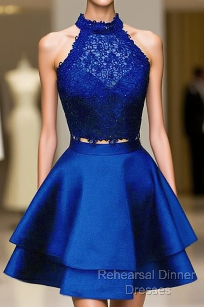 Short Two Piece Semi Formal Prom Dress Halter