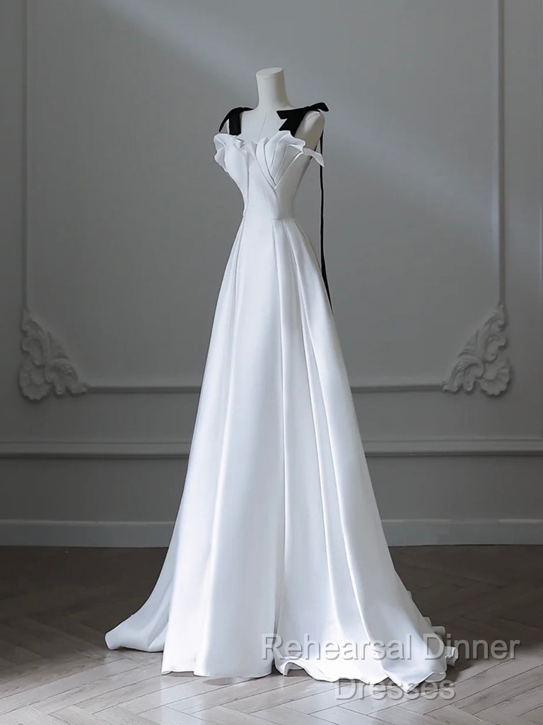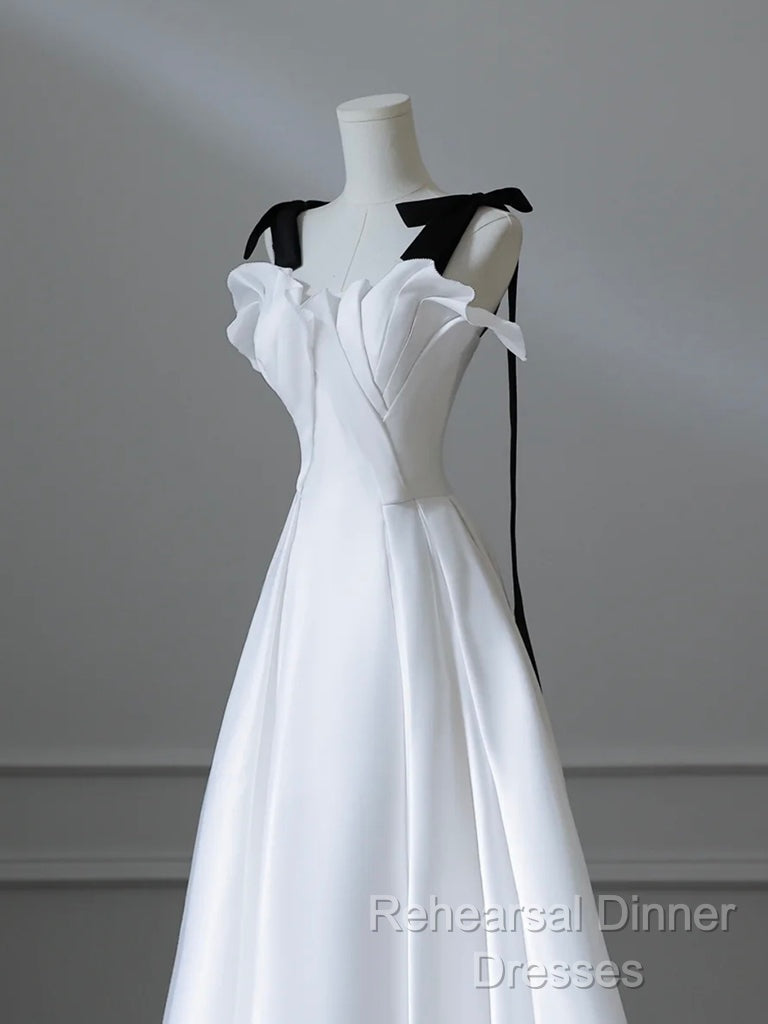 Simple A-Line Satin White Long Semi Formal Prom Dress, White Long Formal Dress