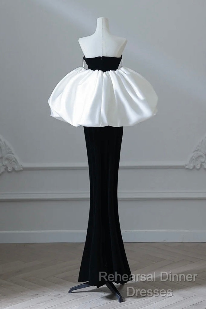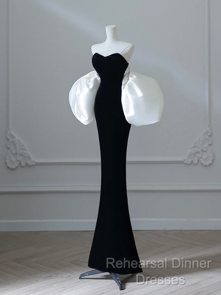 Simple Mermaid Velvet Puff Sleeves Black Long Semi Formal Prom Dress, Black Evening Dress