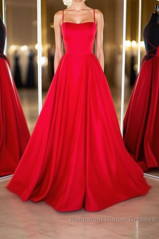 Simple red satin long Semi Formal Prom Dresses, red backless long evening Dresses
