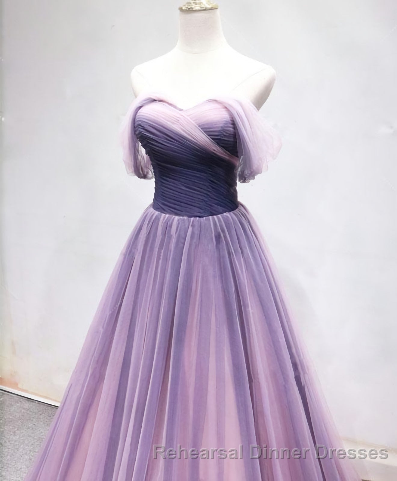 Simple Sweetheart Tulle Purple Long Semi Formal Prom Dress, Bridesmaid Dress