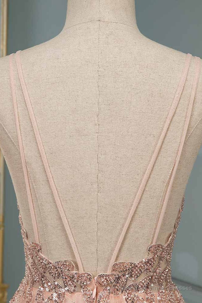 Spagehetti-Strap V-Neck Sleeveless Prom Dress with Beading