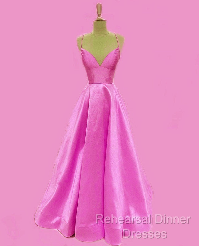 Spaghetti Straps Semi Formal Prom Dresses Long Satin V Neck