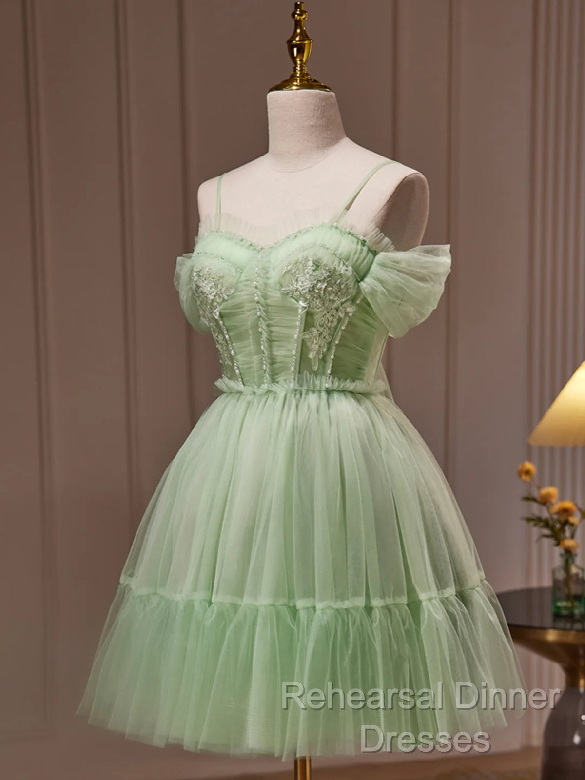 Sweetheart Neck Short Green Semi Formal Prom Dresses, Short Green Graduation Homecoming Dresses