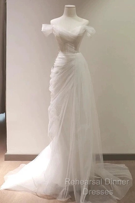 Timeless Mermaid Off The Shoulder Tulle White Wedding Dresses