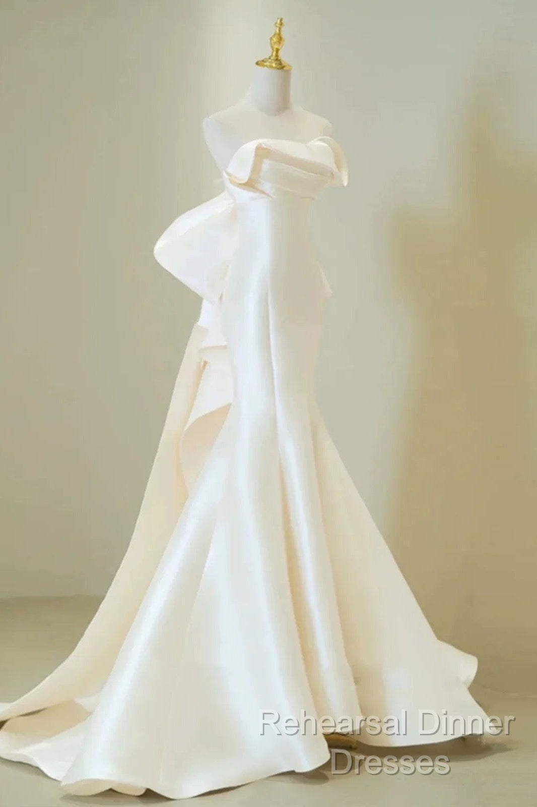 Timeless Mermaid Sweetheart White Satin Wedding Dresses