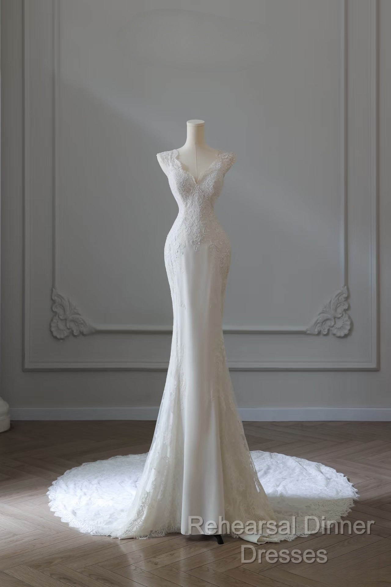 Timeless Mermaid V Neckline White Lace Wedding Dresses Bridal Dress