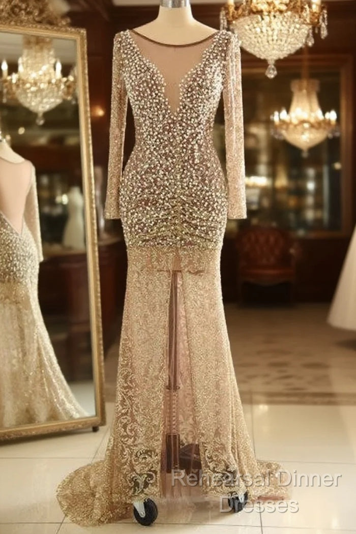 Trumpet Mermaid Scoop Champagne Tulle Beading Luxury Semi Formal Prom Dress