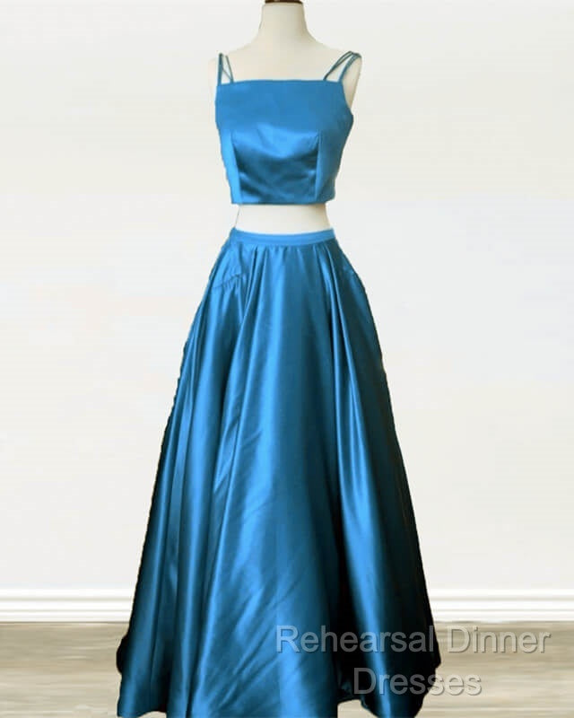 Two Piece Green Satin Semi Formal Prom Dress With Straps