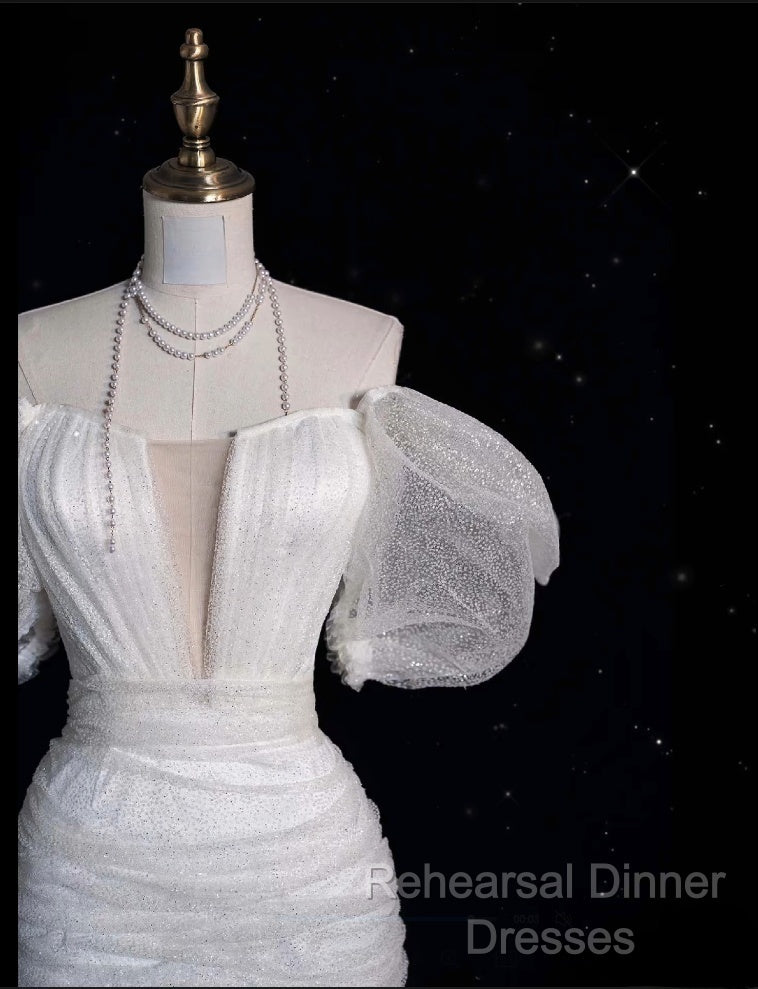 Unique Ball Gown Off The Shoulder Sequin Short Sleeves White Wedding Dresses Brides Dress