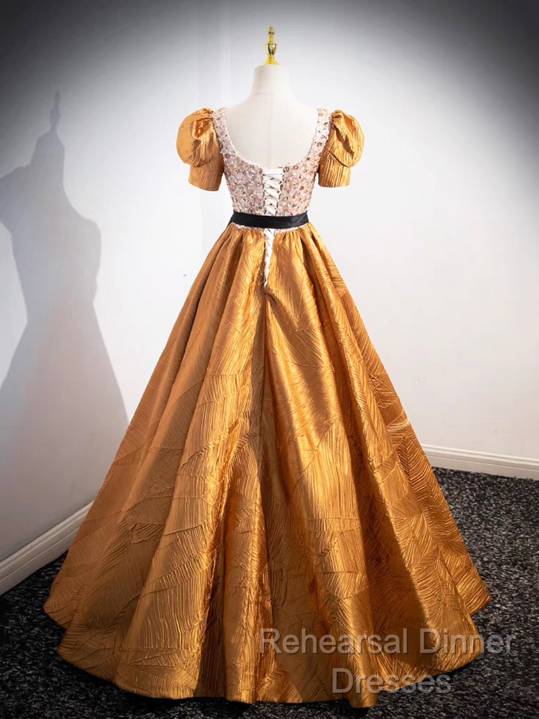 Unique V-Neck Beaded Floor Length Semi Formal Prom Dress, Beautiful A-Line Short Sleeve Party Dress