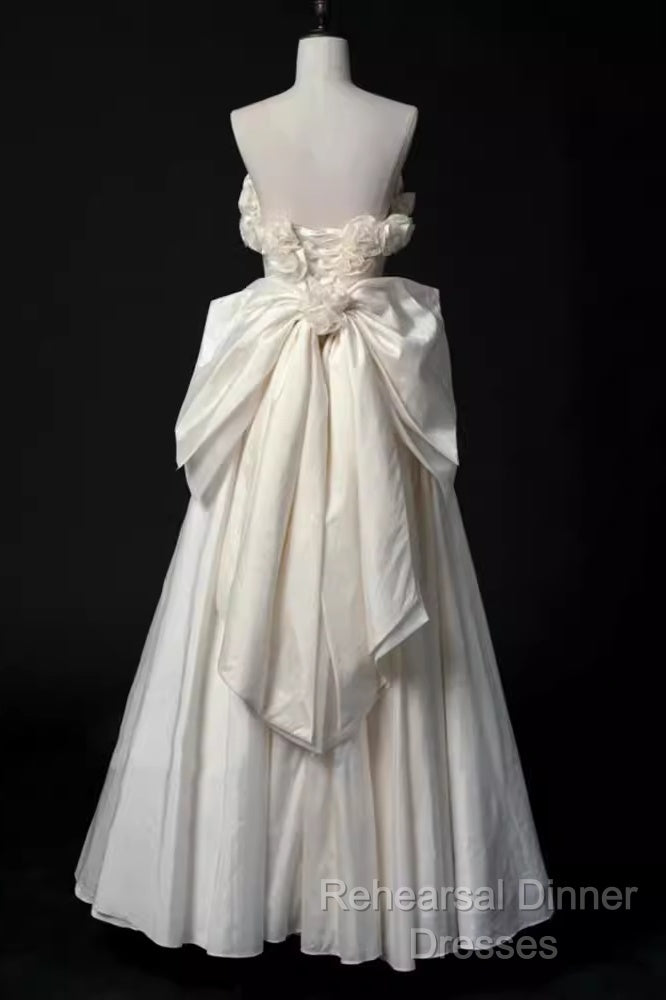 Vintage A Line Strapless Satin White Long Wedding Dresses Brides Dress