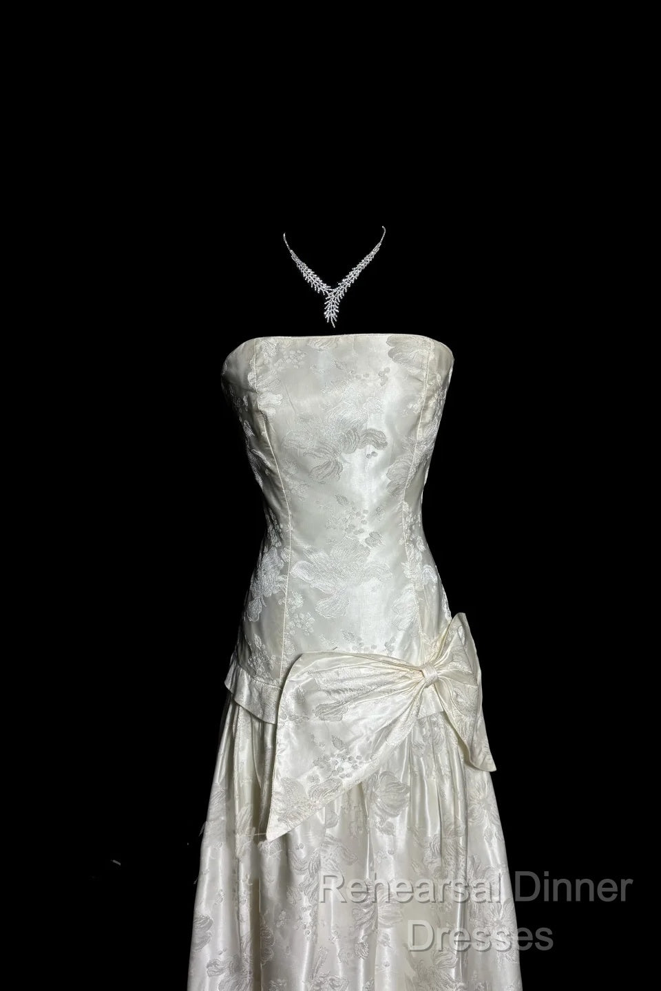 Vintage A Line Strapless White Lace Semi Formal Prom Gown Fairy Semi Formal Prom Dresses