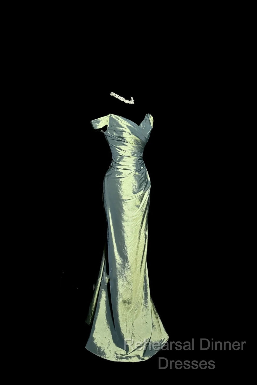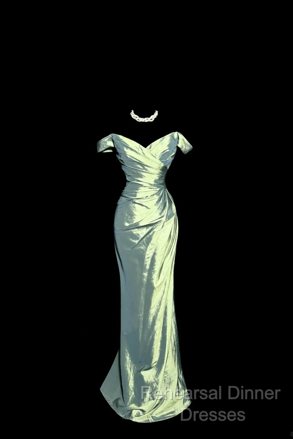 Vintage Mermaid Off The Shoulder Green Long Semi Formal Prom Gown Fairy Semi Formal Prom Dresses