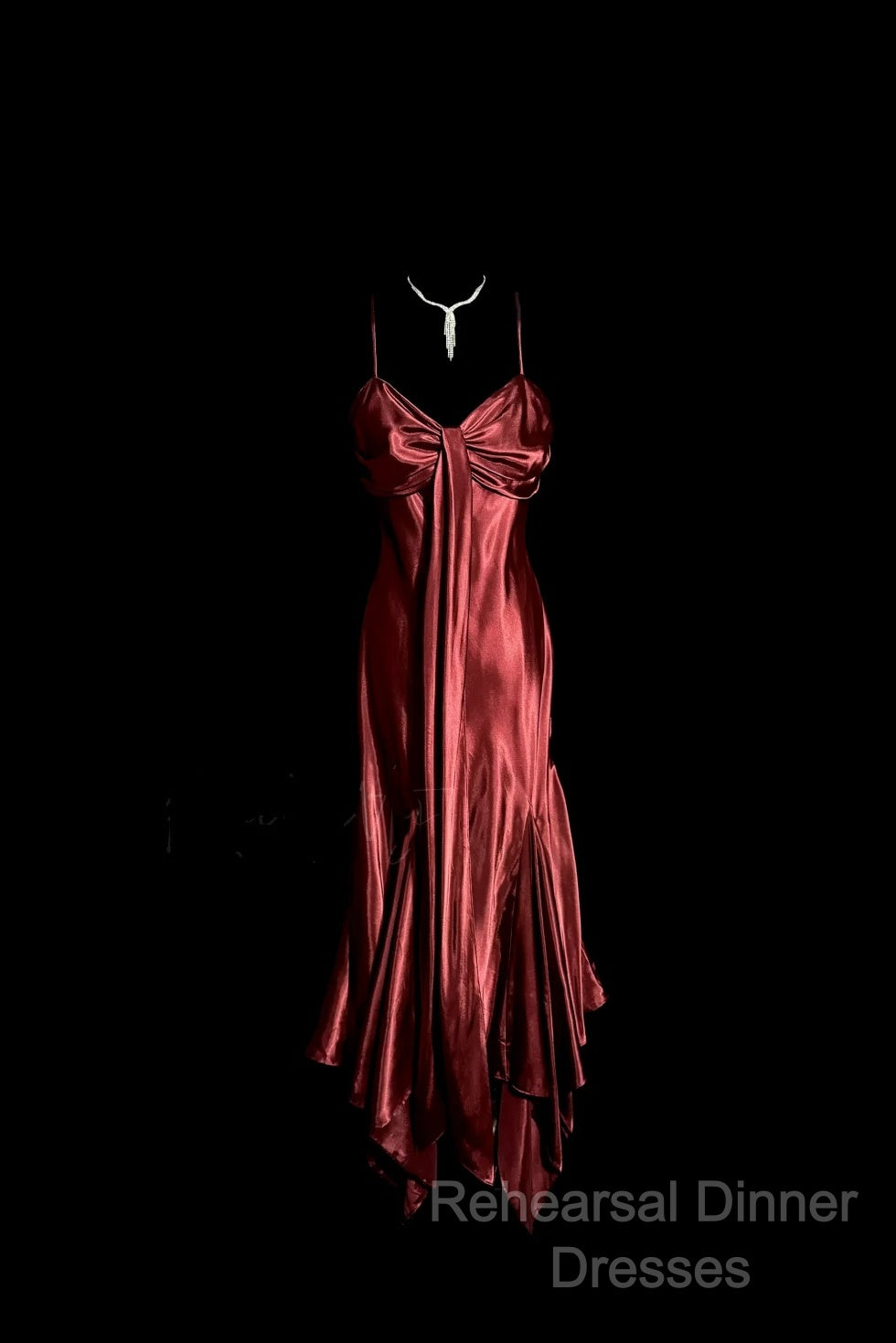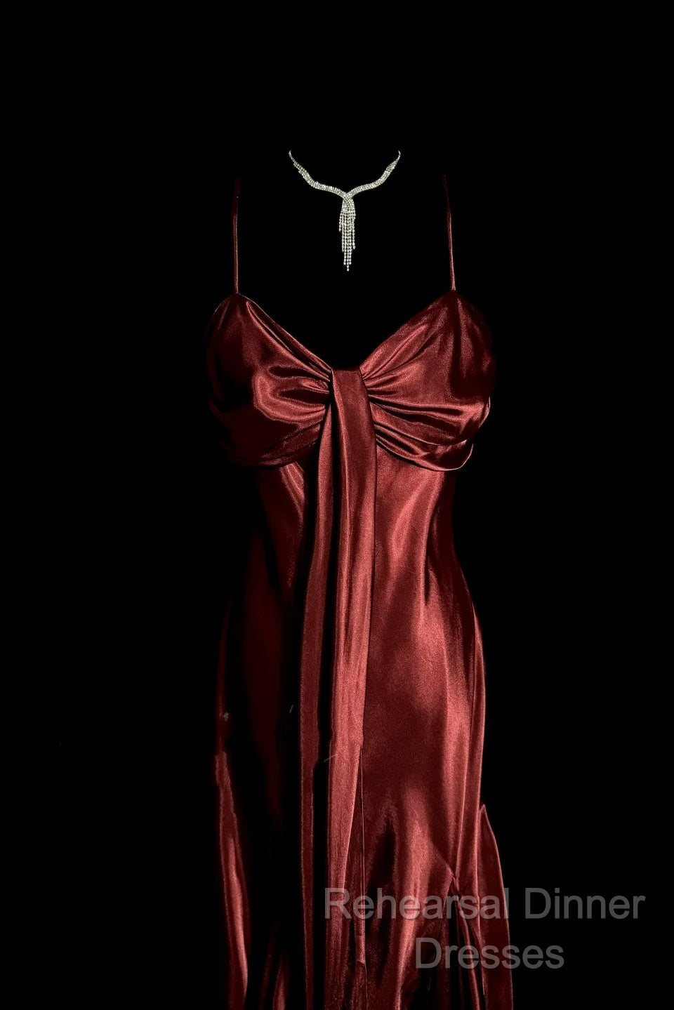 Vintage Mermaid Spaghetti Straps Satin Burgundy Semi Formal Prom Gown Fairy Semi Formal Prom Dresses